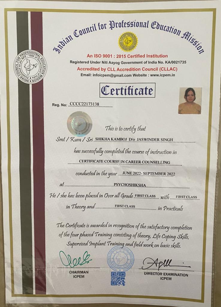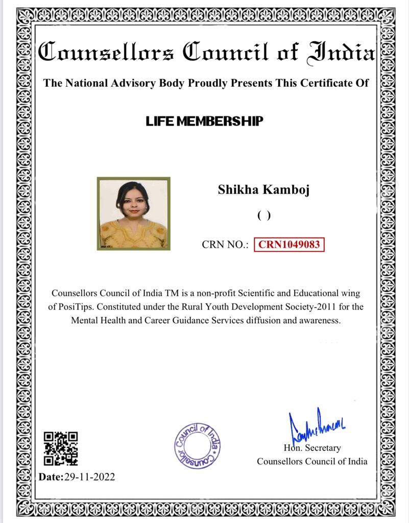 She is really a great mentor and counsellor i have ever met in my life.She helped me a lot during work at college disha whether it was related to motivation or confident she always boosted my confident. I feel fortunate to have Sikha ma'am as my mentor. It's always been fun knowing her as a psychologist.