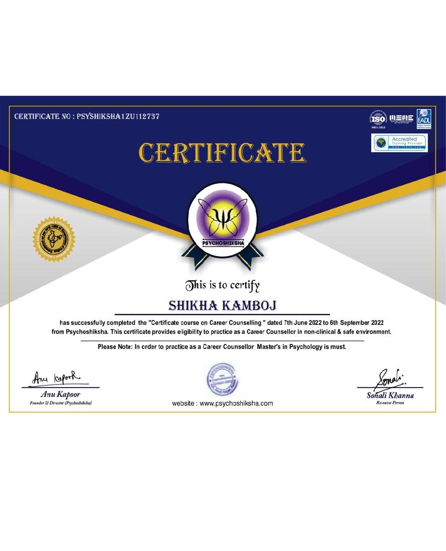 Ms Shikha Kamboj is an excellent guide and communicator. In my experience with her, i' ve sen Shikha ma'am reach out to students , parents, teachers. She uses a platform of tests to measure student's abilities . Her career recommendation has paved the path to many students across the globe.